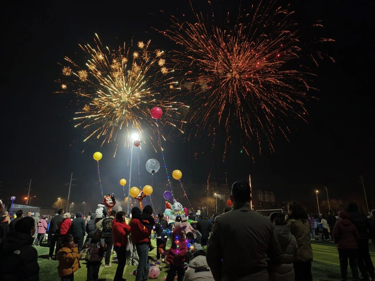 文藝演出余韻未盡,元宵焰火接續(xù)登場。一聲聲巨響劃破夜空,五彩焰火次第升空、競相綻放。剎那間,夜空如錦,萬紫千紅恰似繁花盛放;金輝漫灑,流光溢彩恍若麥浪翻涌。璀璨光影與人間燈火交相輝映,整條美食街瞬間化作歡樂的海洋。歡呼聲、贊嘆聲在夜色中久久回蕩,絢爛焰火承載著全旗人民對新年的美好祈愿,也映照出杭錦后旗蒸蒸日上、欣欣向榮的發(fā)展新貌。